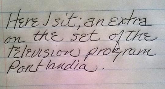 Take 1: Camera rolling. Pretending to write notes as part of my role. Might as well make them real.