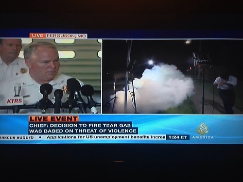 Shout out to Al Jazeera straight up showing a video of their reporters getting tear gassed during a live interview of the Ferguson police chief denying that they are tear gassing journalists.