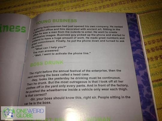 As always, random pictures are those fun pictures that don’t fit in other posts. You might have some of them on myFacebookorTwitterpage – go follow those if you aren’t already! Also from a bookstore in Vientiane – an attempt to translate jokes from Lao to English… I love themed trash cans. Seen at theSirindhorn Museum full of dinosaurs. I think the problem with your bike is… everything. Even geckos love some wine! (In ca...