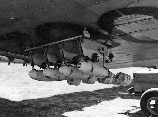 I mentioned that it had been briefly used in combat during the so-called 'Border War', in 1976, carrying 20lb. bombs and machine guns. The images below show the camouflage paint scheme used, and 20lb. bombs beneath a T-6's wing (originally designed for bombing practice, but effective enough against personnel in the open if they fell close enough).