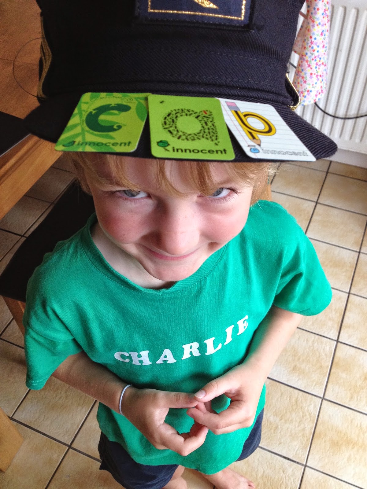 I'm always up for a challenge and accepted this one in the same spirit. We've had fun with these Innocent alphabet magnets before (and you can too - they're giving away the latest set of magnets with Innocent smoothies and there's more! Collect the barcodes from the packs and you can send off for your name in magnets if you like...)