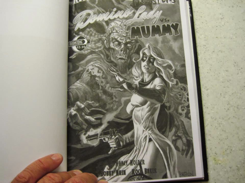Moonstone Books has released Of Monsters and Men! This is a collection of titanic new team-up tales and slugfests between pulp heroes and monsters. This book is available in paperback and hardcover. The hardcover edition features bonus content, including a story I co-wrote with Nancy Holder that pits Domino Lady against a Mummy in 1930's Hollywood. Learn all about it below.