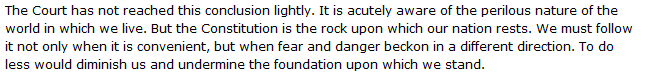 But that plan just ran into a roadblock called "the rule of law." Judge Lewis Kaplan of the Southern District of New York yesterday barred the testimony of the Government's key witness -- the individual who says he sold Ghailani the TNT used to blow up the embassies -- because the Government only learned of that witness as a result of torturing Ghailani. Kaplan -- who previously rejected Ghailani's motion to have the indictment dismissed on the ground that his right to a speedy trial had been violated and that the torture he suffered compelled dismissal -- relied on centuries worth of clear legal precedent barring the Government from benefiting from information it obtains via coercion and abuse of the defendant. In the 1935 case Brown v. Mississippi, the Supreme Court barred confessions made by black defendants that were beaten out of them by Mississippi sheriffs, explaining that the use of coerced statements has been "the curse of all countries" (emphasis added):