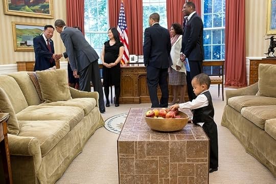 But while sprawling around and/or sleeping inappropriately is a favorite pastime of bored children in the presence of the president, the most fascinating aspect of the Oval Office is the bowl of apples that sits atop the kind-of-ugly coffee table in the middle of the room: