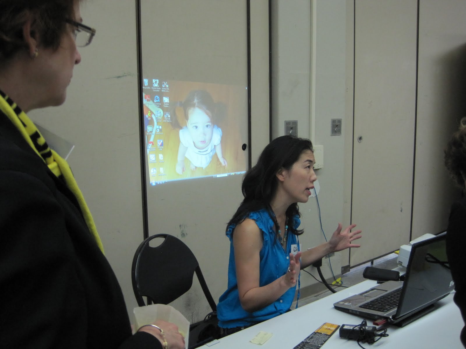 Cynthia Liu showing everyone how to Skype at the Hot Spot on the Encyclomedia convention floor.