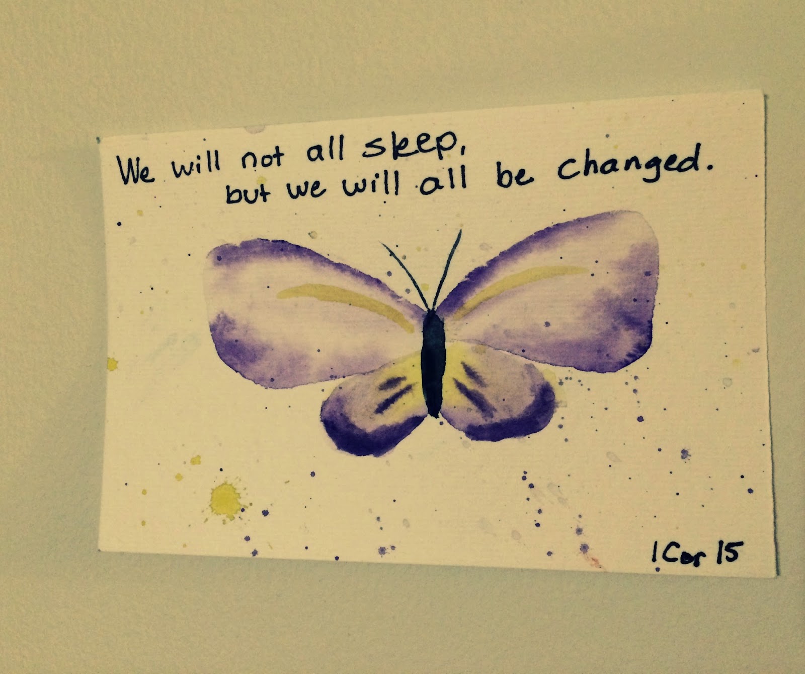 This morning, we added imperfect, papery decoration to our hallways, our mirrors, and even the front porch. We will not win any Better Homes contenst. But God will remain before our eyes in the days to come. When we walk from bathroom to bedroom and drop our hope along the way, His Word will fill us up again.