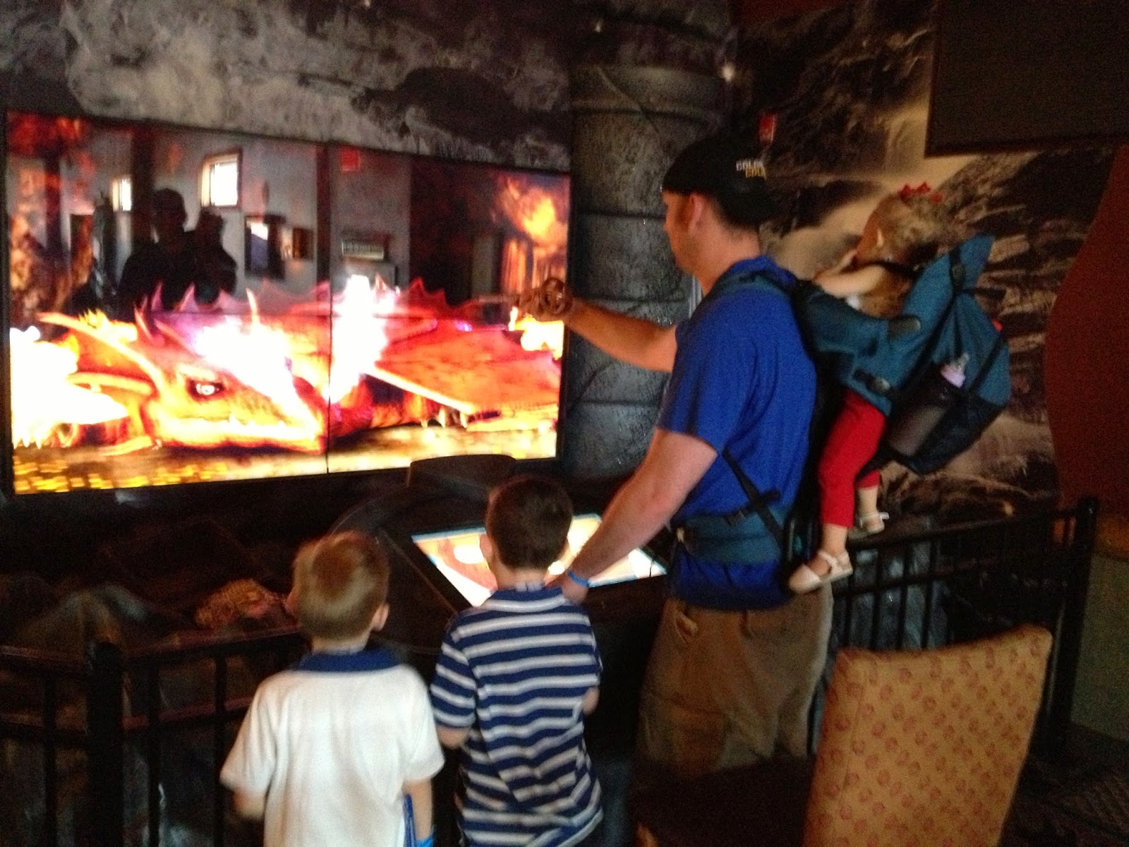 Our laughter as she wrecks the block-village our boys made for her in Godzilla fashion.