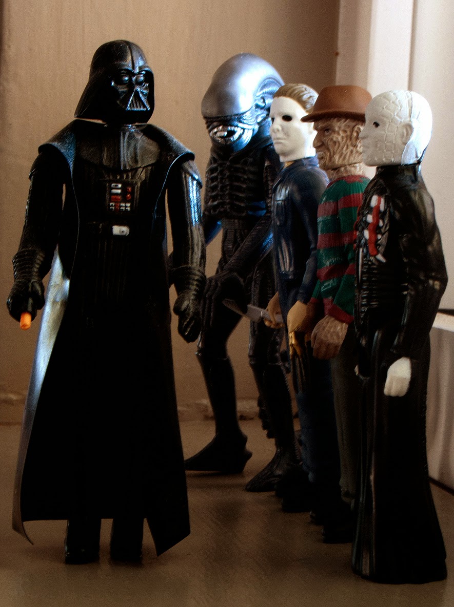 There are plenty of '80s horror toys out there, but this format still seems delightfully surreal to me. My picture (up above) looks like it belongs in a parody commercial. This feeling is reinforced by Pinhead's baby-like features. Yeah, I know: Where's Jason? Let's just pretend he's still part of a mail-away offer for three proofs of purchase, or something.