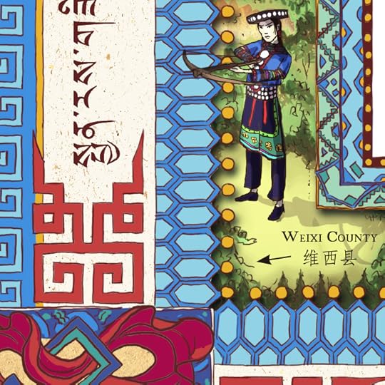 The border is in Tibetan script (the holy words “Om mani padme hum” repeated) with the ashtamangala, the eight auspicious symbols of Tibetan Buddhism.
