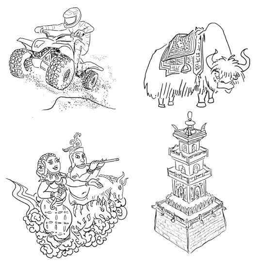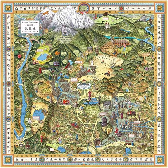 The border has the traditional holy animals of the local Nakhi people and a poem in their own ideographic script, also translated into Chinese.
