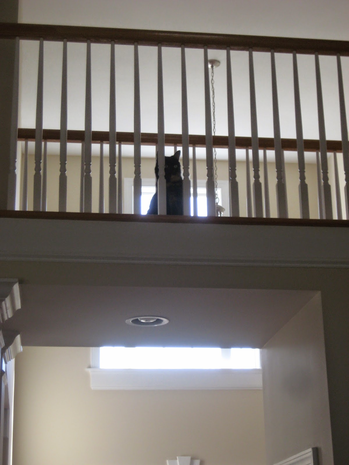 When Makoose isn't preforming theater for us, Monster spends much of his time lounging up there. Which means I can officially claim to have a Monster guarding my Chasm Bridge in my new home. How many folks get to say that?