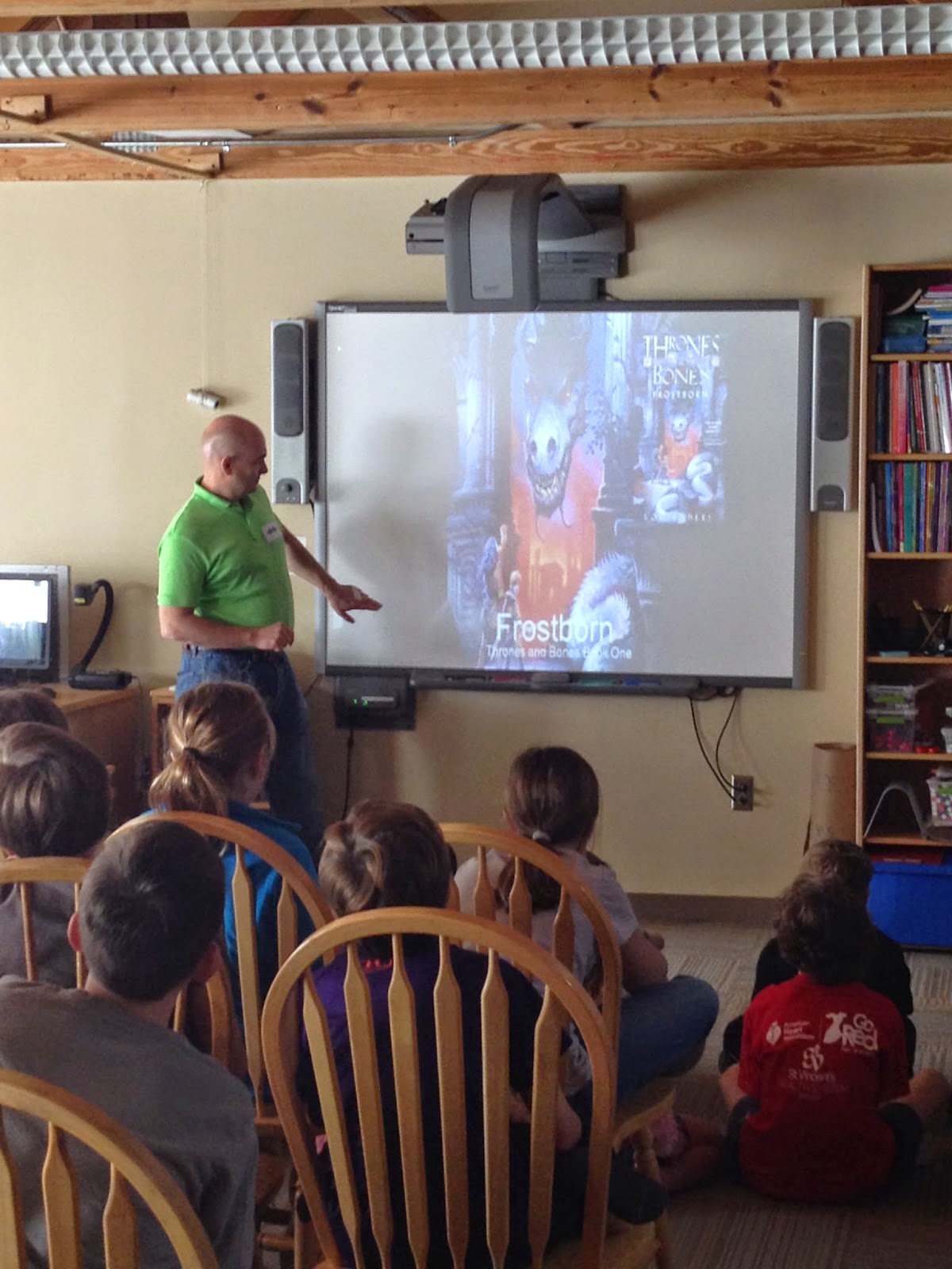 Yesterday, I visited Hilltop Montessori School, in Birmingham, Alabama. I spoke to around fifty-six children from three classrooms, then signed books. It was a wonderful visit with some very sharp children, and in addition to introducing many kids to my world, I also met some very enthusiastic Thrones and Bones fans who have already read my book and are eager for the sequel. Thank you to Ms. Janet, Sherry, and Chelsea for allowing me to speak to your kids! Thanks also to Sara Glassman of Little Professor Book Center, who was on hand to handle Frostborn sales.