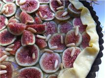Place the crust in a pan (preferably a metal tart pan with a removable bottom – metal helps the crust cook through). Leave the extra crust to hand over the edges. Prick the bottom of the crust with a fork. Top with the almond cream. Slice the figs on top. Scatter the pine nuts. Fold the extra crust over the top of the tart, to form a little border. Brush the top of the folded over crust with the remaining ½ egg.