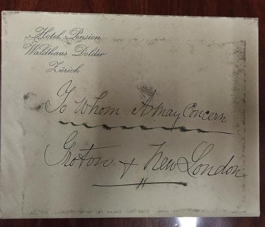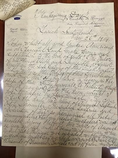 Letter written Thanksgiving Day in 1914 and inserted into time capsule by Abby Day Slocomb, first regent of Anna Warner Bailey Chapter, National Society of Daughters of the American Revolution, from Zurich, Switzerland.