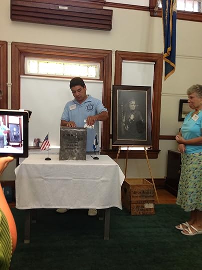 The time capsule at Fort Griswold Monument House was sent in 1914 by Abby Day Slocomb, first regent of Anna Warner Bailey Chapter, National Society of Daughters of the American Revolution, from Zurich, Switzerland. She addressed it to regent of the Anna Warner Bailey Chapter,