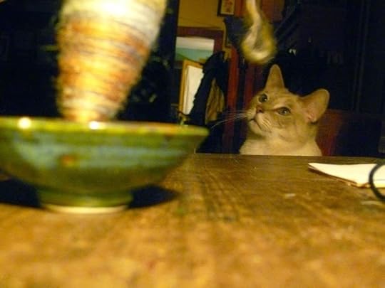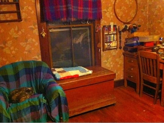 While writing, I've been spinning silk. Yesterday afternoon, I glanced over and saw this: