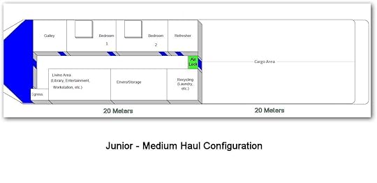 With the Null Fold star drive, the trip to Tabit only takes 11 hours but a round trip still requires that the passengers eat and sleep. What was required was a cross between The Flying House which had no cargo capacity and MINIMCOM's normal configuration which was all about transporting people and equipment.