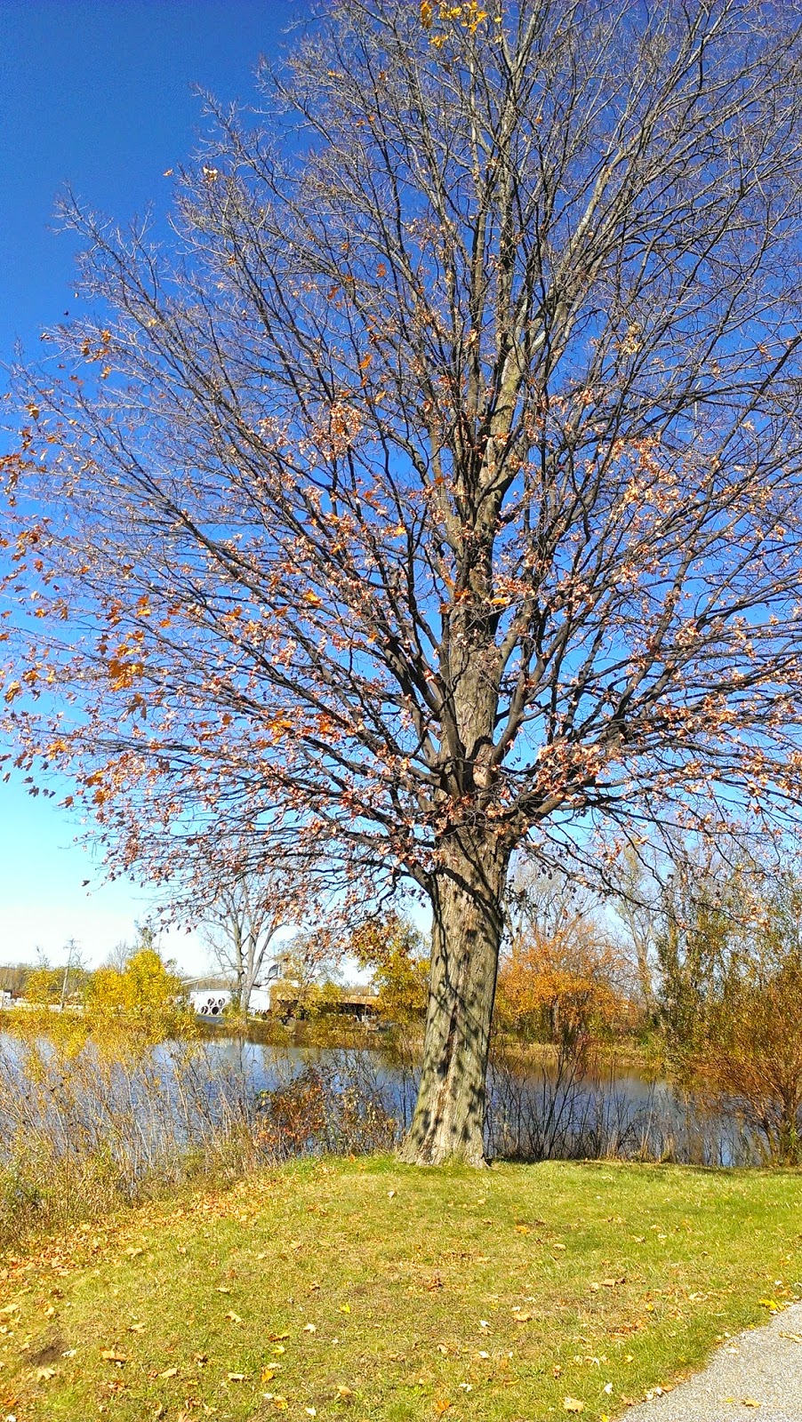 Yes, this is the same tree that was so beautiful two weeks ago. Now only a handful of stubborn leaves remain.And as of today only four weeks remain until we leave for Florida. Naturally I have added projects to my to-do list. With leaves falling all around outdoors, I decided to bring fall indoors and have been stripping wallpaper in my bathroom. The leaves fall much more effortlessly, I can assure you. My blue sky and angel decor, which I installed 10 years ago on top of the original pink stripped paper, is going right down to plain paint. That means scoring and spraying and scraping, and scoring and spraying and scraping the next layer. Then washing down the walls to get off the paste residue. After a week of bursts of work each day, I finally have smooth, white walls which will become "Hazelnut Cream" and "Plum Good" tomorrow.