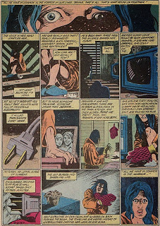 and Alfredo Alcala, from Swamp Thing #54, 1986)All the same, it would take two issues from the point where Swamp Thing dies to his next appearance, including the entirety of Swamp Thing #54, “The Flowers of Romance.” This issue reintroduces Liz Tremayne, a supporting character for much of Pasko’s run unseen since “Loose Ends” three years earlier. Liz has seemingly had a rough time of it, being psychologically abused by Dennis (a plot point set up all the way back in “Loose Ends”), who has convinced her that Sunderland is still hunting them and that everything poses a massive and terrible danger - so much so that at the start of the issue she spends forty minutes “sick with indecision” trying to decide if it is safe to plug in a television set while wearing rubber gloves and oven mitts to protect herself from electrocution, and only doing so because she is desperate for human contact after Dennis goes out for three days. Moore lingers on these scenes, allowing them to play out with a considerable and visceral horror that is unsettling in ways little else in Moore’s run, and certainly little else in horror comics is. In many ways the scenes, even though they do not actually contain any direct sexual violence, fall into the larger pattern of Moore’s depiction of rape, but there’s an edge and anger to them that goes beyond even that, finally paying off the myriad of depictions of abusive relationships Moore had been depicting in Swamp Thing since the beginning, including Abby and Matt’s. Moore had been building to this story for years, having talked as early as 1984 about it in response to a question about drawing on real-world, contemporary aspects of society to craft horror stories. “I’d tell you a contemporary horror story,” Moore replies, “but I’m going to use it as the Liz and Dennis storyline, and I don’t want to give too much away. However, it’s something that really happened to a cousin of mine. It’s about the destruction of one human being’s whole personality by another. That’s an example of human evil that, to me, is more frightening than any number of demons from hell.”