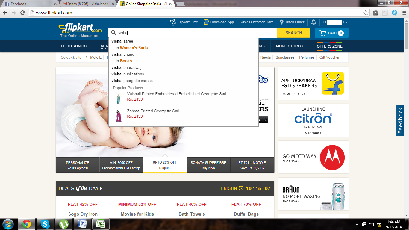 Even before I could complete writing my first name, Flipkart was suggesting my name under the category, Books. A moment that I shared with Pari knocked my mind for few moments and I could not control the smile that appeared on my face.