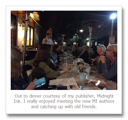 Bouchercon has grown over the years to be a giant gathering, and, speaking as a first-timer, it’s somewhat overwhelming. But I had a wonderful time, met up with old writing buddies, connected with some readers and made many new friends. What more could a crime writer ask for?