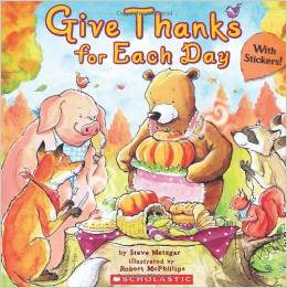 And of course the day also involved a Thanksgiving book, a beautiful book called Give Thanks for Each Day by Steve Metzger. The illustrations by Robert McPhillips were equally delightful and lent an extra special joy to each page. Told in rhyme, this story reminds us to be thankful for the small things, everything from new crayons to parades. It also reminds us to be thankful for each other and the love shared in moments like holding hands. This book would be especially good for children five to eight who are just starting to learn the concept of thankfulness.