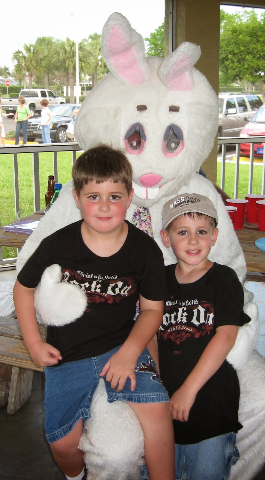 Our homeschool group's Easter party at our church.The Easter Bunny (aka my husband) making a visit to our Sunday school party.