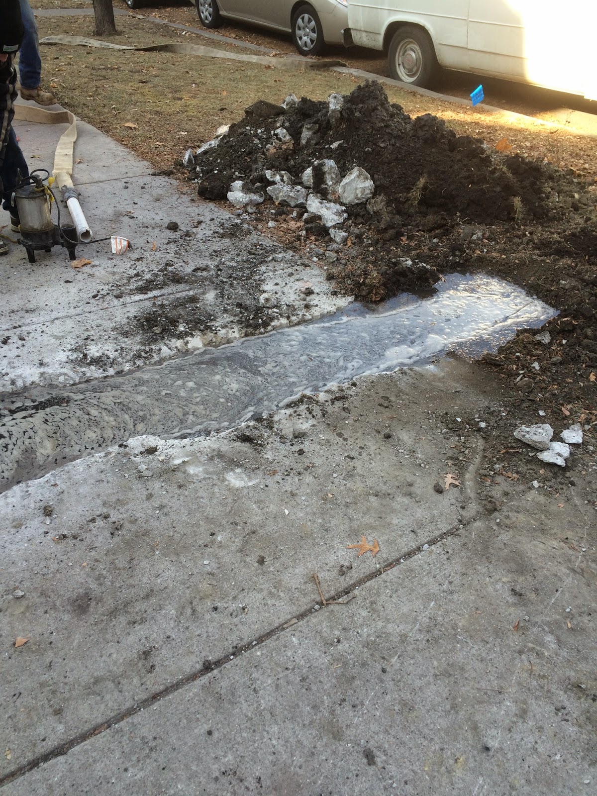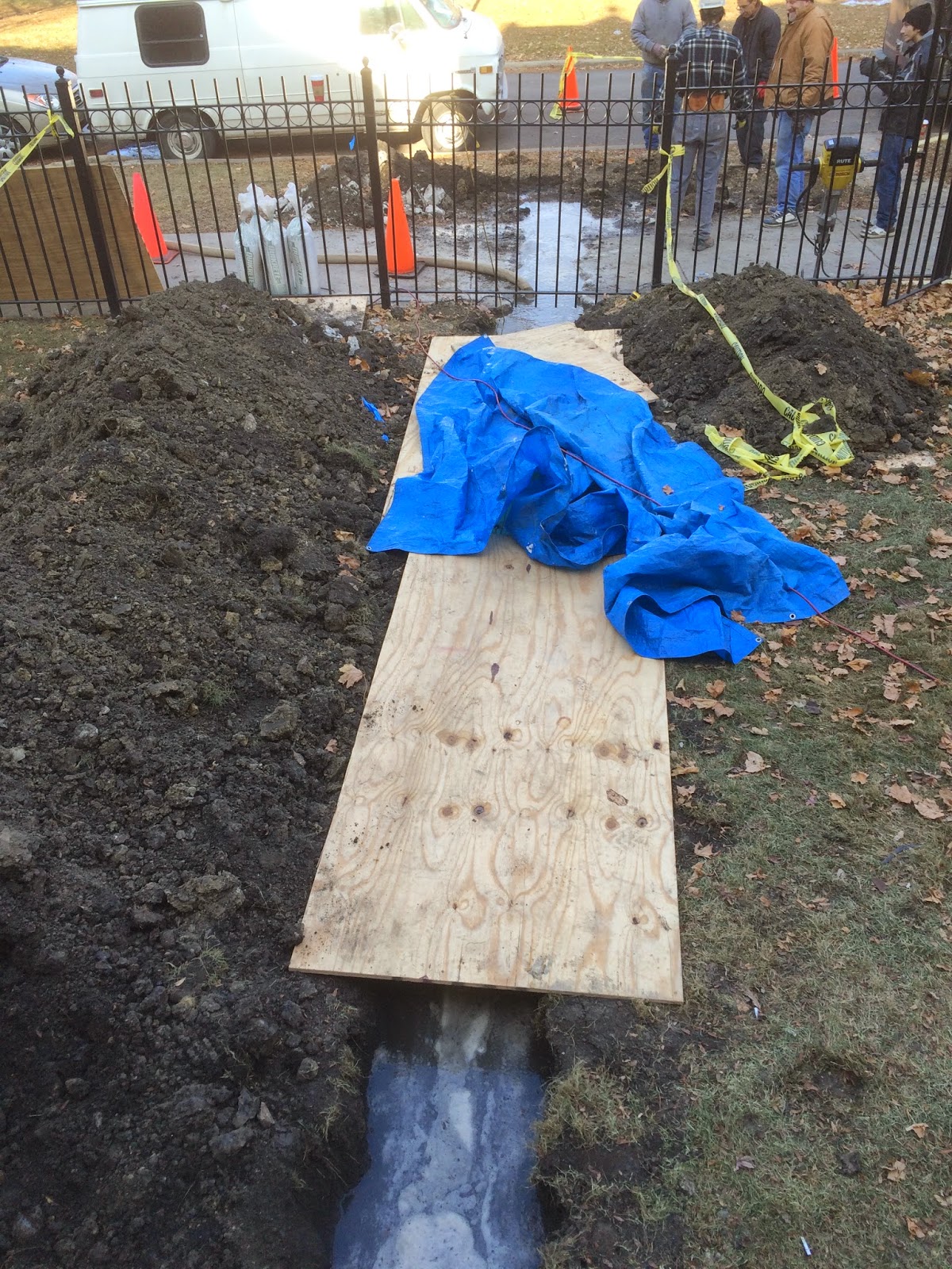 Eventually the trench was emptied, they were able to clamp the broken pipe, shut the water off, and make repairs. Luckily we have a great team, so we got our water service restored within five hours, and now they are finishing up the final details and will start to get the trench filled back in, and tomorrow they will come to pour the concrete to fix the sidewalk.