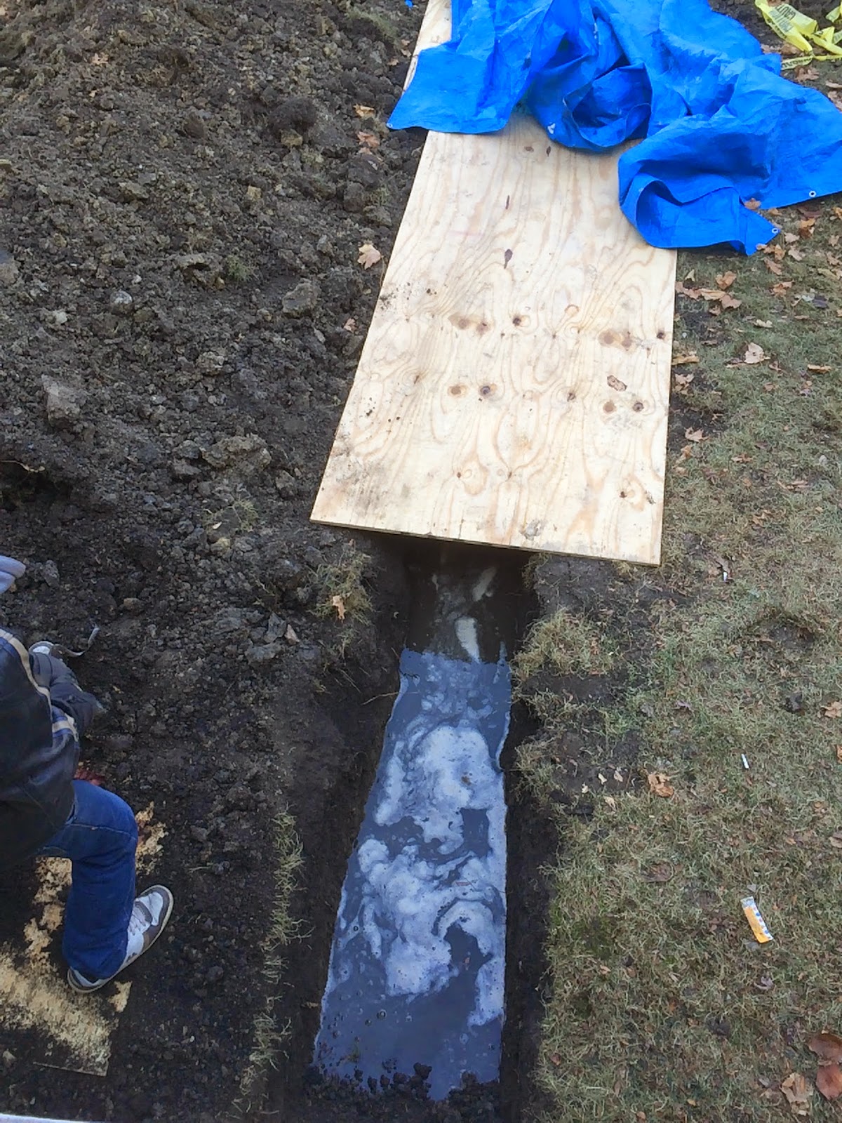But first they had to set up a pump with a hose to suck all the water out of the trench.