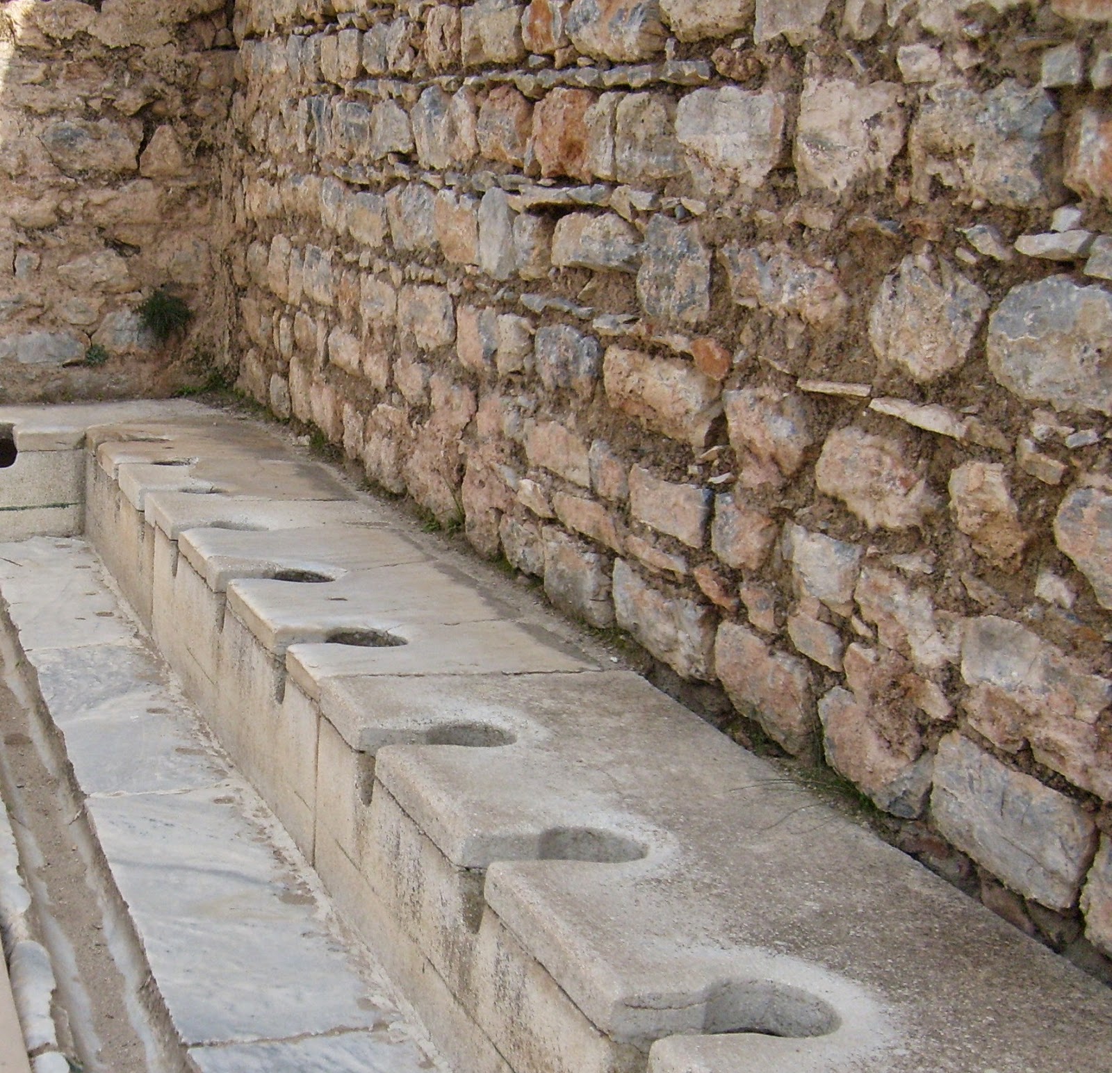 I took this photograph while visiting Ephesus in Turkey. There is no doubt that going to the toilet was a social activity and you can see about a third of the number of places above. Toilet paper wasn't available but a shared sponge on a stick was used for cleansing the bum. It wasn't until 1857 that massed produced toilet paper was available in the UK. The Chinese were wiping with hygienic paper in the ninth century.