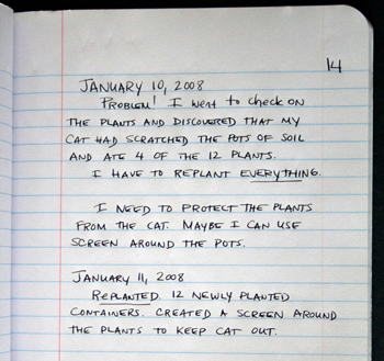 There were three areas I needed to track in a 240-page notebook that had to last me a year.
