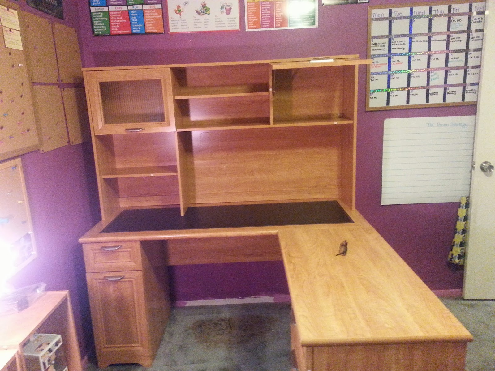 Furniture building. I am not good at it. I get impatient, throw things, and cry when I'm not done in the twenty minutes I think it should take. But my back was suffering at my old desk so I went out on Black Friday and bought a really cool new one. After a few days of looking at the box, as impatient as ever, I was ready to build it on my own. I figured it would take me an hour - max. Of course when I posted the picture of what the completed project was supposed to look like: desk, attached L-piece, hutch, drawers, and doors, I received both chuckles at my naive belief I could build it on my own and offers of help to build it. Thank goodness!