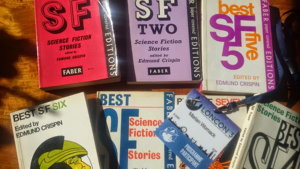 The complete collection of Edmund Crispin's collected SF for Faber & Faber (London, mid 1950s)The above picture highlights something I particularly like about SF/F fans: they respect their own history. The LonCon proudly featured a number of display panels on which information about past Hugo awards was featured, laced with the highlights of older conventions. A con is a meeting point between friends, you learn that rapidly. We have encountered old friends and made new ones, met some of our own authors for the first time, de-virtualised people we deeply admire, had lunch with our favourite writers and publishers. After attending ComicCon as well, some deeply enjoyable features of LonCon that spring to mind are: (A) its size, not disproportionately large, nor too small; (B) the many goodies to chose from in the form of art, all sorts of creative projects on the go, new and secondhand books, amazing people to stop and have a chat with; and (C) its impressive program of panels, talks, meetings, screenings, workshops, concerts, and many other events (I counted thousands; I doubt I’m wrong) covering… well, absolutely everything.
