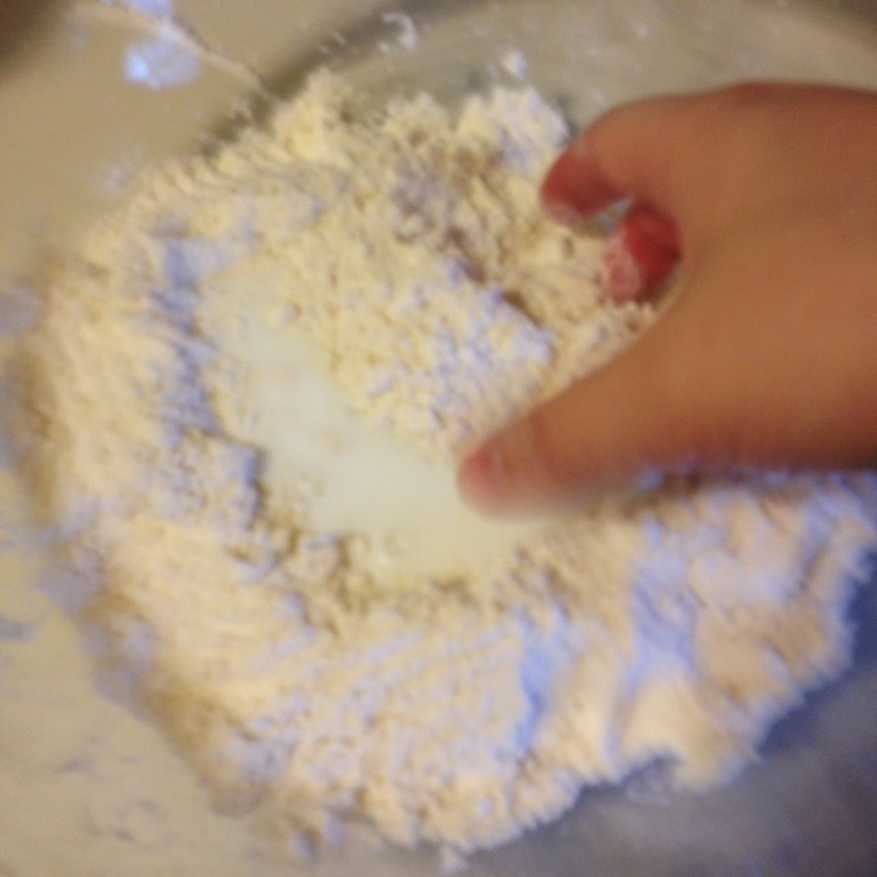 Then I got my hands dirty by mixing the butter in by hand. Then I made a well...