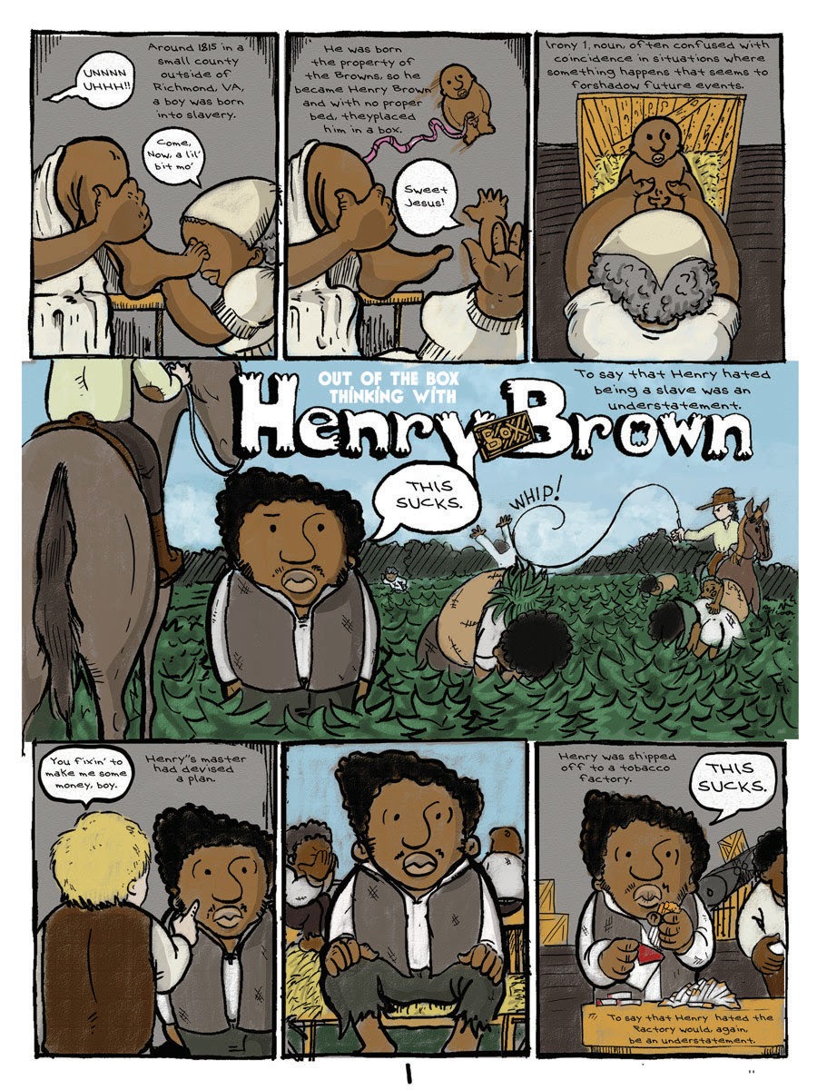 With respect to the graphic storytelling, I loved the fun and humor and expressiveness of the artwork. It was just very well done—simple but effective, and with great integration of text and image in a variety of ways. Humor is also used well, and I enjoyed the use of "placeholder" images inside word balloons to substitute for racial slurs like the N-word. (Gill addresses this in his NPR interview; I highly suggest checking it out.)
