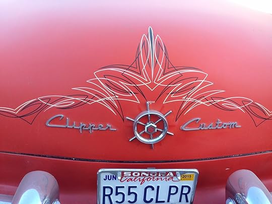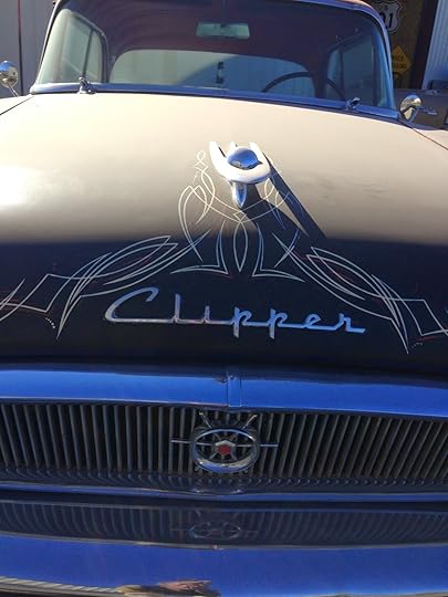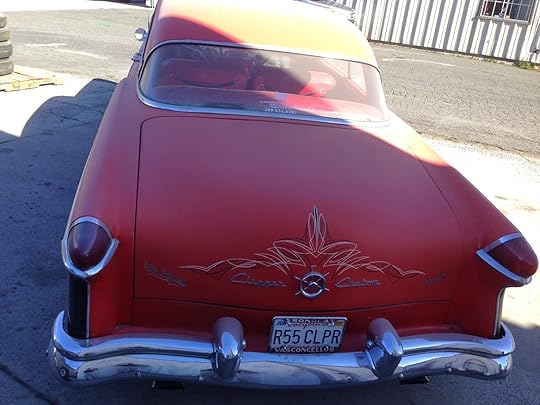 "Saw this dust-covered rig the other day...it drew me in. It had no identifiable emblems, so I guessed it was a Merc. Wrong. It's a PACKARD!! (That's what drew me in I assume; some kind of packard lover's sixth sense.) It's a 1955 Clipper Custom "Constellation". I think the pinstripig is stock. I saw another identical one for sale while researching this on e of the web. Sam pin striping. The red is called "Panama Red"! A somewhat weird-looking, test beautiful Packard."-CRW