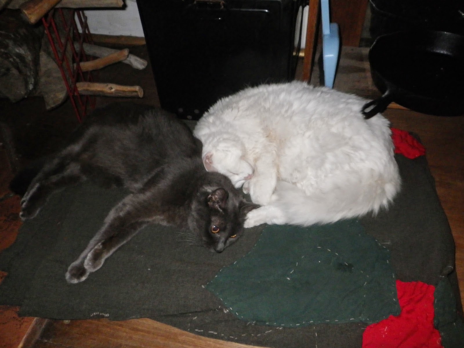 He was mother to all the new cats, especially to two tiny kittens nicknamed The Potatoes - Fearless and her brother Shadow. He even let Shadow suckle on him. Shadow and Fearless kept him warm and snug until the end.