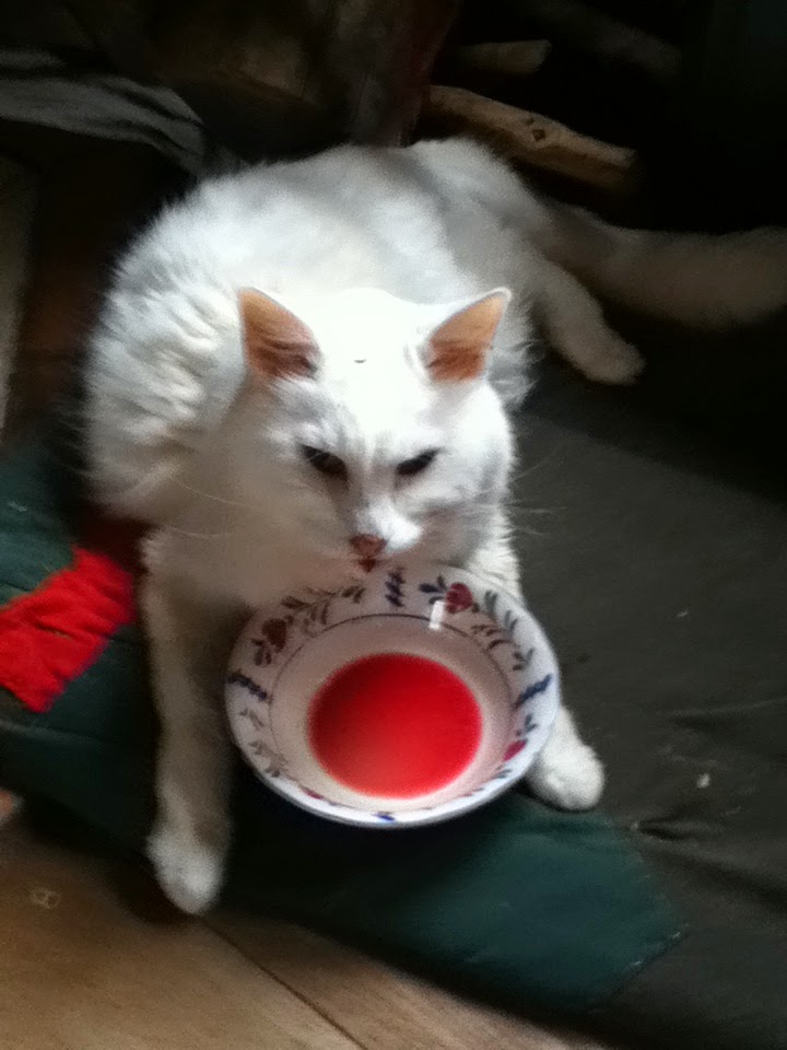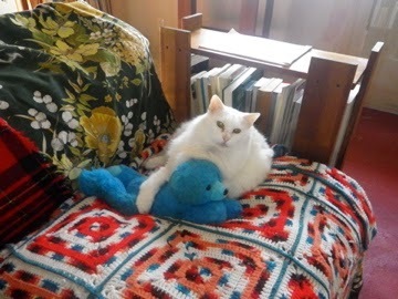 Leo and BluebearMany of you remember the lordly, bossy, white - and possible - Turkish Van who purred up at you from the couch or floor when you came in the door. He terrorized a block watch meeting with great glee and verve. And a dead bird. More on that, later.