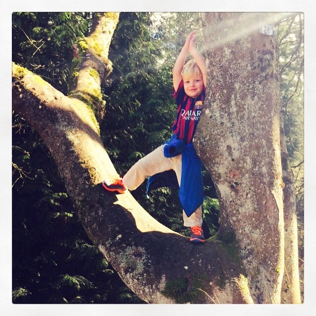 Tree pose in a tree. His love of yoga and anything physical continues to shine. Still playing music. Still 100% silly, imaginative. He's been drawing the most adorable snowmen and yesterday a long skinny weiner cat. Recently while watching some of his baby videos together he said, "mama, I really like the way you laugh." He notices stuff like that. Totally inspires me.