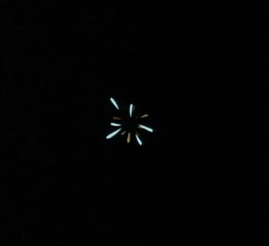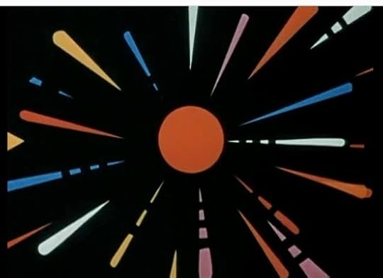 Next the vortex seems to explode, or at least feature a definable center, in orange. The orange then transforms to blue...and the blue circle is revealed to be the bottom of an hour glass: another manner by which to tell time.