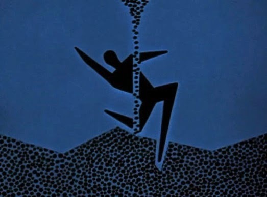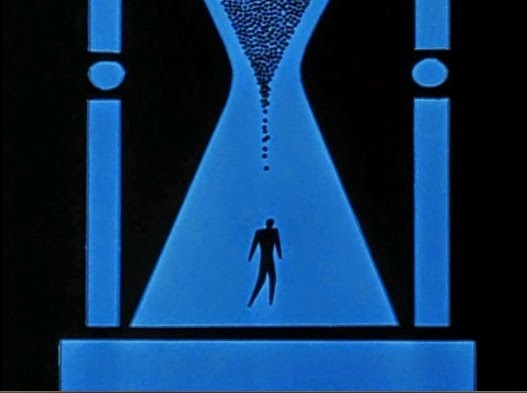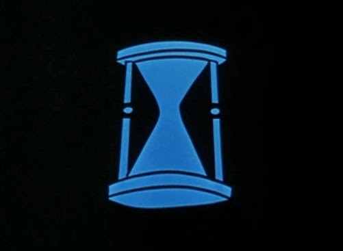 The sands of time literally bury our hero in the next shot,and he is unable to escape this trap. Then, the series title comes up, backwards at first (as though we are viewing it from the inside of the hour glass).