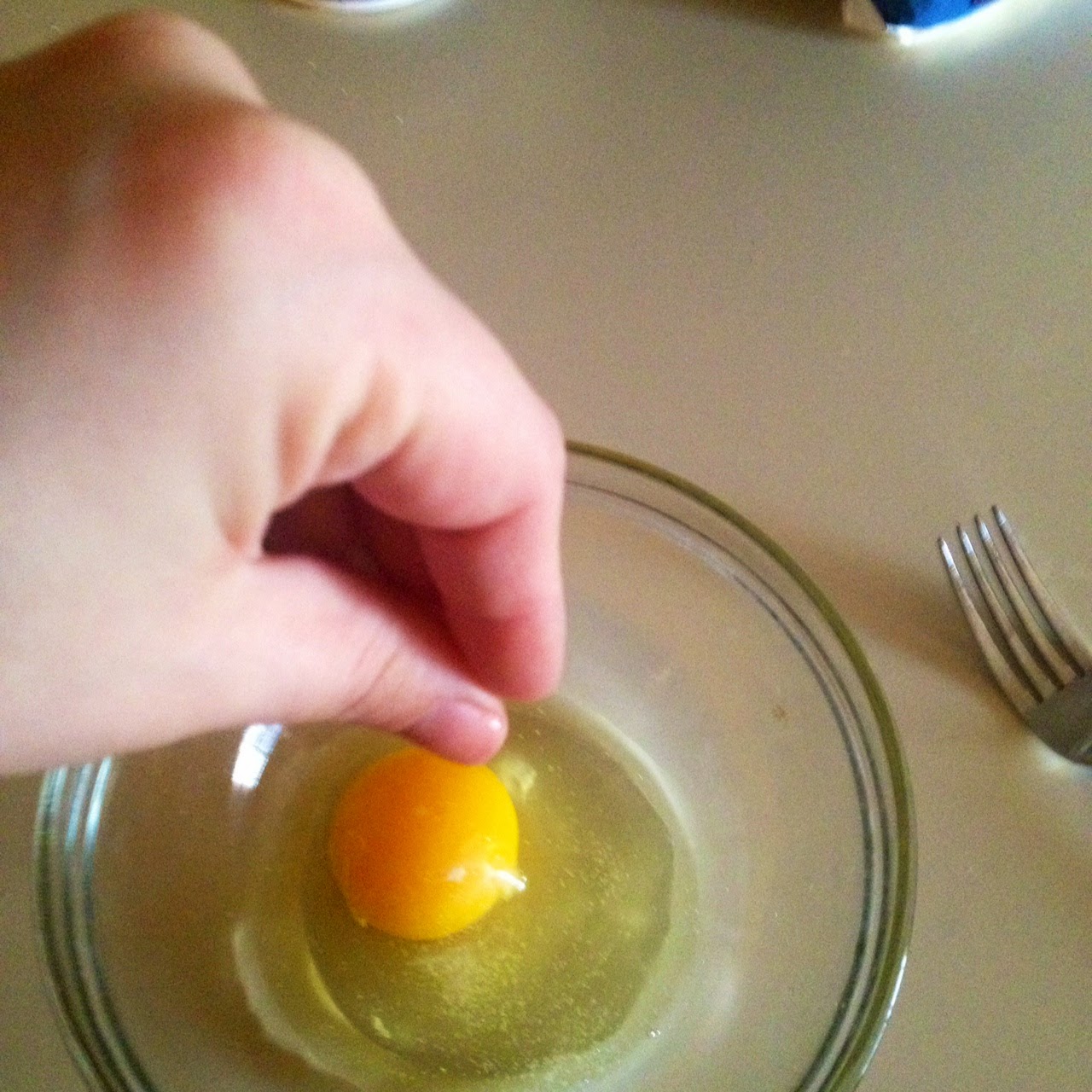 The ingredients in vanity cakes are pretty simple. You'll need an egg, a pinch of salt, and some flour. You'll also eventually need oil (or lard if you want to go the original Little House route) for frying and some powdered sugar to shake over the top later.