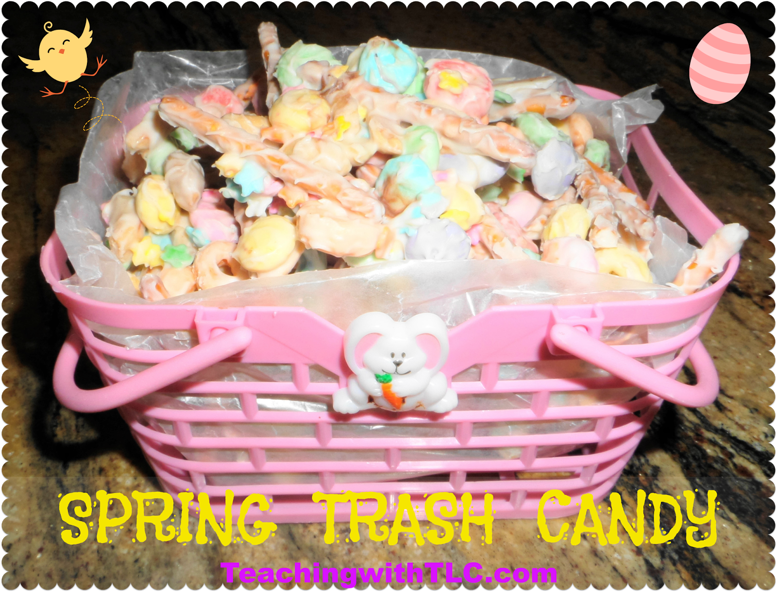 Classic White Trash Candy that I shared with you seven years ago, so we decided to add our own spin to it to make it more spring-like. My kids came up with this recipe-