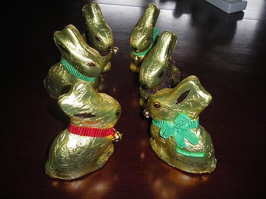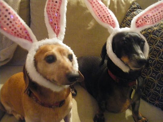 No chocolate for them, but they will get some treats, unless they chase the Easter bunny out of the yard. We don't advise you to try this with cats.