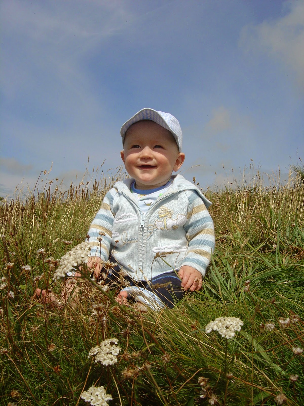 And here's his sister's first real taste of the sea at Newgale beach a few years later...