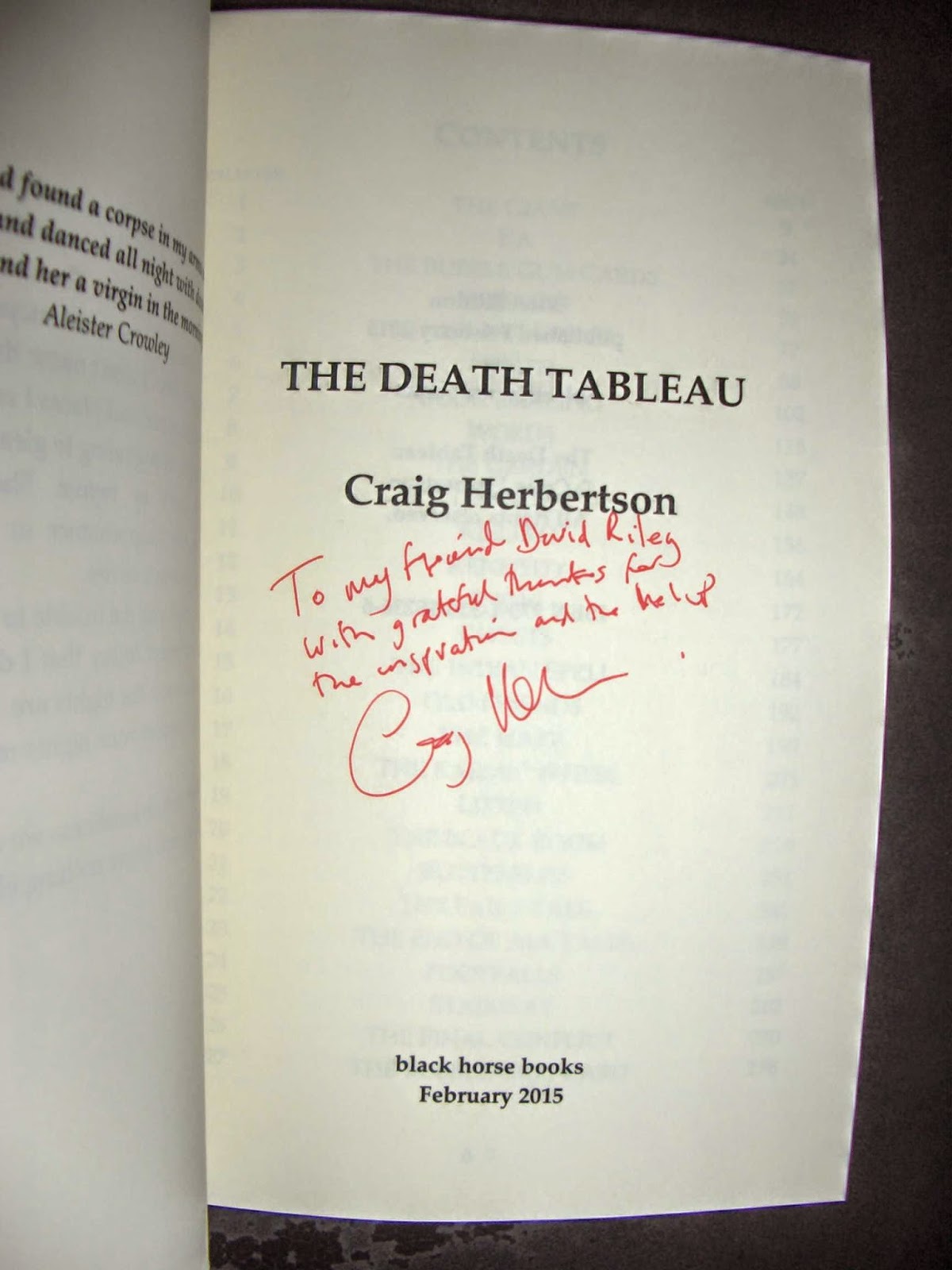 Lovely surprise today with the arrival in the post of an inscribed copy of Craig Herbertson's latest novel,