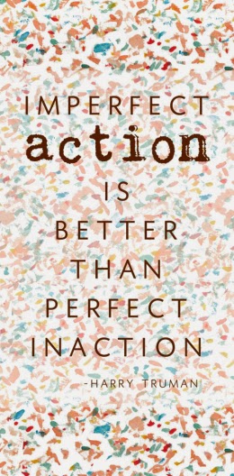 (photo credit)Many of you have probably heard the Harry Truman quote, "Imperfect action is better than perfect inaction." I love this quote because it reminds us to do.