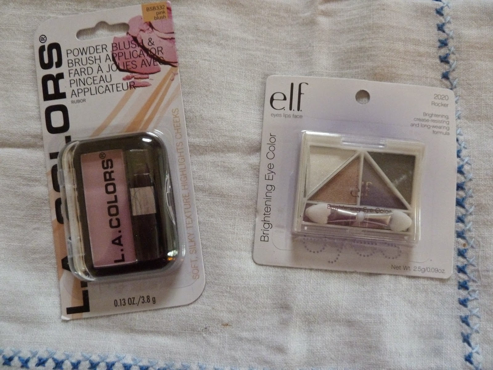 Of course, I cannot go into the Dollar Tree without buying some makeup, and yesterday was no exception. I don't really wear much blush because I have a rosy complexion, but I do have a bronze one, and kind of needed another. I grabbed this pretty pink L.A. Colors one. Then, because I need some more matte shades of eyeshadow, I got this cute little elf palette that I will use today.