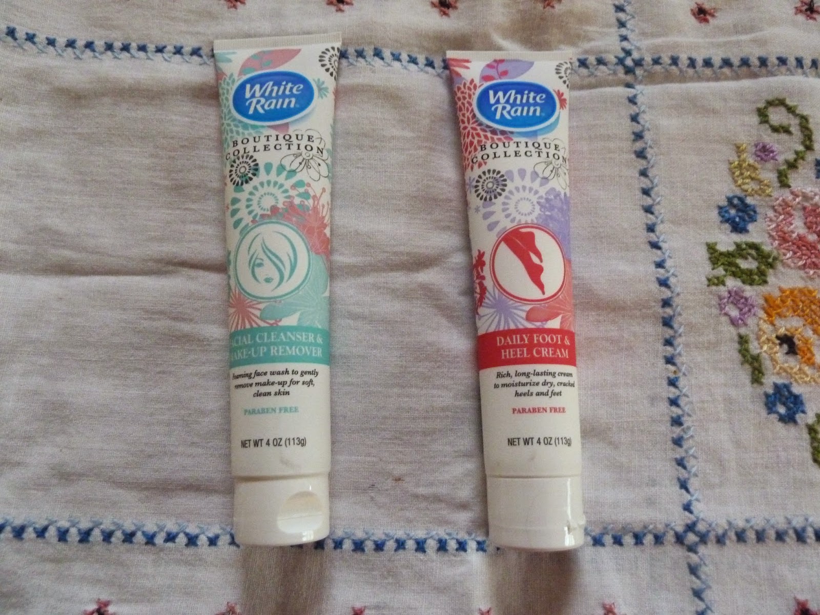 Continuing with the White Rain, we have the facial cleanser & makeup remover, and the daily foot & heel cream.