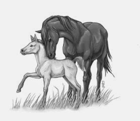 When I was little, I was just called “the grey colt.” That was because there weren’t any other grey colts at the stables. And, of course, being the only grey it was obvious who my father was. He was the tall, dark grey stallion that frightened half the grooms. They kept him in a special, reinforced stall and when he was let out, it was to go alone to a paddock with double fences. He took an interest in me though. Whenever he saw me following my mother out to the mare’s pasture, he would whinny and make a big fuss. He would run back and forth along the fence closest to us, shaking his head high and low, his tail raised. But my mother ignored him, of course. She had me to feed and look after. She was a lovely black mare with large, gentle eyes and I’m sure I was her favorite, although I had two older sisters and an older brother. She was very proud and protective of me, and wouldn’t let the other mares near me unless she was standing ready to bite them if they weren’t friendly. But they were always friendly and admiring, except for the snobby white mare who thought she was better than everyone anyway and always kept apart. The other mares all thought she got what she deserved when her foal was born brown and ugly.